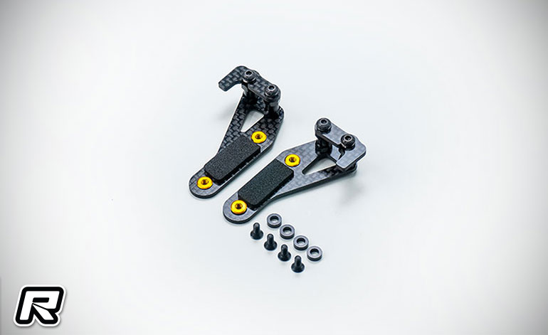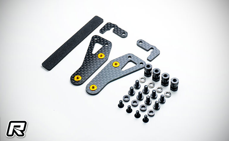 Taiwanese brand Koswork has released two new option parts for the Kyosho Optima Mid 1:10 4WD Buggy. For the Turbo Optima Mid Special, they have created a carbon upper deck which is specially designed to lower the weight and keep the rigidity. With gold colour nuts installed & steel screws included to hold the belt dust cover in place firmly (the original Kyosho upper deck cannot hold the dust cover screws firmly) it is made from 2mm carbon fibre and is a direct replacement for the original deck. The second new option is a Carbon Fibre Shorty Lipo Battery Mount Set. Also designed for the Turbo Optima Mid Special but also working for the Optima Mid series, it is designed to hold the shorty battery pack in place. The moveable battery holder is also cut from 2mm carbon fibre and is a direct fit upgrade over the original battery holder.