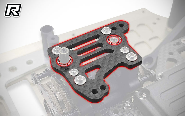 New from T-Works for the Kyosho MP11 1:8 buggy which was released in July comes this carbon fibre Center Gearbox Plate and Upper Plate. Made from high-quality carbon fibre and coming with precision flanged ball bearings, the gearbox plate is a direct replacement for the plastic kit plate and combining lightweight properties and high toughness it reduces the overall buggy weight. The Upper Plate reduces vehicle weight burden and enhances handling flexibility and requires no additional modifications for mounting.
