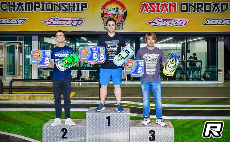 Ronald Volker was the dominant force at a rain effected 2025 Asian Onroad Championship, the Mugen Seiki driver taking the TQ & win at the stand alone event hosted at the impressive GRC Raceway in Korea. With this year’s event attracting an impressive international entry led by the Axon of 2024 Champion Akio Sobue, due to rain the main action would end up being condensed into a single day made up of 3 rounds of qualifying and double Mains. Topping all three qualifiers, Volker claimed the TQ ahead of Ji Heon Yoo, Sobue and Alexander Hagberg. In the finals Volker’s domination continued as he won A1 by over 3-seconds from the Xray of Hagberg and the Awesomatix of Marc Rheinard, a spin on the opening lap by Heon Yoo dropping him down the order. In A2, Volker won by an even more impressive 7-second margin from Sobue with Rheinard again P3 but overall it would be Hagberg and Sobue who joined Volker on the podium. In 17.5 Boosted Zaccheus Lam took the TQ & win while in FWD Yong Wan Choi was the winner.