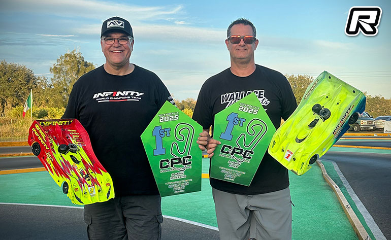 DJ Apolaro and Scotty Ernst gave Infinity a double win at the annual Cow Patty Classic at the Nuggets Ranch Raceway in Arcadia, Florida.  One of the US nitro onroad race majors and run by US nitro onroad stalwart Greg Esser and his family, the 14th edition not only attracted the Top US Nitro racers but also a group of European visitors.  In qualifying, each driver’s fastest time determining the order, after the 6 rounds it was Apolaro who secured the TQ ahead of the Capricorn of German’s Thilo Diekmann and former Nitro Touring Car World Champion Ralph Burch.  In the 1:8 Masters class it was Robert Ronas who took the TQ ahead of Ernst.  With a 40-minute final determining the Masters result, Ernst would set the fastest lap with with his Kabuto powered IF8-3 and take the win after Ronas’ race came to an end with 6 minutes to go.  Behind Ernst, Donna Garcia and Peter Berton completed the Masters Top 3.  With a 45-minute Main for 1:8 Open concluding the weekend’s action, Apolaro would be kept on his toes by Diekmann, the two very evenly matched on outright pace, Apolaro’s best lap a 15.063 compared to Diekmann’s 15.093.  With Burch retiring from the race, in the end Apolaro took the win by under 10-seconds from Diekmann with Joachim Bruneau taking the final step on the podium while Ersnt backed up his early win with a P5 in Open.  In Nitro Touring Michael Palazzola took the TQ and win ahead of Alex Eesser while in 1:8 GT Nitro the Raptor of World Championship finalist Carlie Lopez took the win.