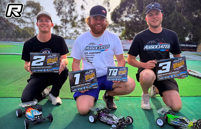 Lachlan Donnelly is the new Australian 1:10 2WD Buggy Champion, the Team Associated driver taking over the title from US Offroad star Spencer Rivkin who won the title in 2024 as part of Team Associated’s preparations for recently IFMAR World Championships Down Under. Hosted by Adelaide Radio Controlled Raceway, in qualifying it was Donnelly who secured the TQ after the four rounds ahead of Schumacher’s Jayden Edmunds and the Associated of Damon Davis Perry. After three previous podium Nationals finishes in 2WD, Donnelly would go on to win the opening two A-Mains to finally claim the title for a first time. Winning A3 Jarod Ment would finish runner-up ahead of Jack McMillan as Perry Davis and Edmunds finished 4th & 5th respectively. With the attention turning then to 4WD, Donnelly looked set to try and defend his National title in the class from P2 on the grid but rain would stop the action and with the finals postponed a day, Donnelly wouldn’t be able to race the finals as he wasn’t able to change travel plans back home to Sydney. Securing the TQ, it would be Perry Davis who becomes the new 4WD Champion with Edmunds and McMillan joining him on the podium. In Stadium Truck it was Edmunds who took the title ahead of Lachlan Munday.