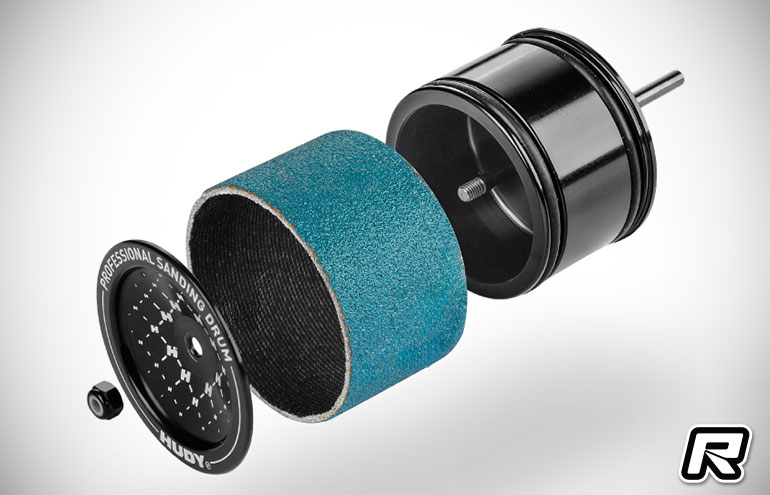 Adding to its tool line up famed RC tool producer Hudy has introduced its own Sanding Drum designed for Lexan bodyshell and wing preparation, as well as other detailed technical work.  Machined from premium Swiss 7075 T6 aluminium, the sanding drum body ensures perfect balance, durability, and smooth operation when used with any handheld rotary tool.  The body features an easy-to-change drum attachment system using an M3 nut, allowing quick replacement of sanding drums to match the desired grain roughness.  The complete set includes P120 medium grain sanding drum.  Optional drums are available in a range of grits from coarse to ultra-fine – P080 (Coarse), P180 (Fine) and P240 Grain (Ultra-Fine).