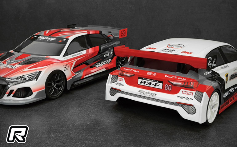 Italian company Bittydesign has unveiled their all new A3-F 1:10 190mm FWD body shell. Their latest 190mm offering was born from the desire to create a new body that could gather the experience accumulated with their previous FWD bodies but with different aerodynamic solutions in order to obtain the maximum possible performance for this category. The Audi A3 based A3-F body shell is universal and mounts on all 1:10 190mm FWD models, and also Touring 4WD as well, with 257-260mm wheelbase. Made with high quality and genuine polycarbonate Lexan it is produced in Light Weight and Ultra Lite (ULT) versions. Sold clear with protective film outside it includes a complete set of screws, nuts and large plastic washers to fix properly the rear wing with a pre-cut decal sheet and windows mask included.