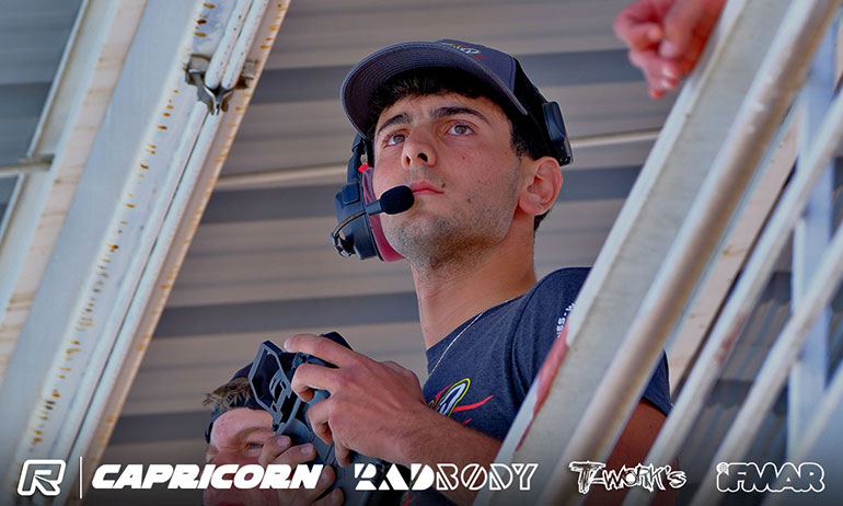 Serpent’s Andrea Catazani has taken the penultimate round of qualifying at the IFMAR 1:8 Onroad World Championship, his second TQ run meaning it is all to play for between the Italian and Xray talent Maxime Ripoll. With both drivers having 2 TQ run each, Q6 will decide who will the Top Qualifier at the 24th running of the RC racing’s original World Championship. With three drivers still in contention going into the fifth round, Gruber’s challenge would end with a bang as he crashed his Capricorn in the 5-minute of the 7-minute heat to be one of a number of cars not to finish the top heat. Having opened the day with his second TQ run, and a new fastest time, Ripoll would also have a mistake but while he could continued his performance was hampered by his body rubbing off his front left tyre. With Simon Kurzbuch another none finisher due to his engine stopping after going too lean. Ripoll would net himself a P3. Setting the fastest lap of the heat, up front Catanzani would take the heat with a one & a half second advantage over Mugen Seiki’s Shoki Takahata.