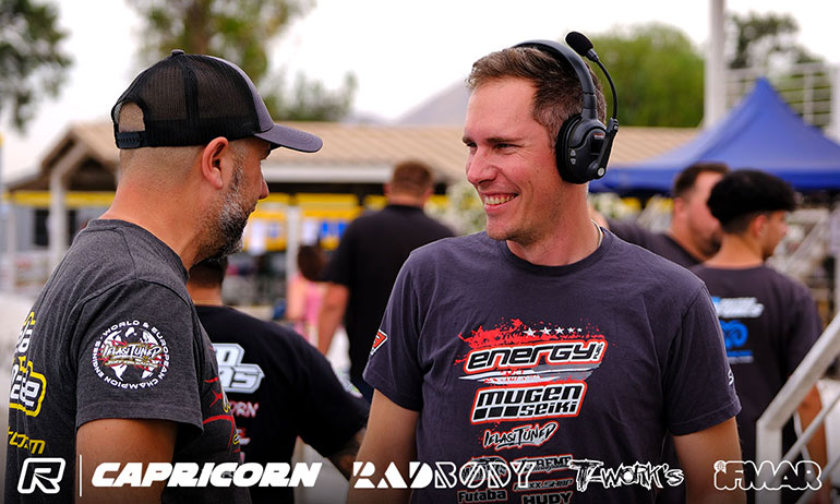 Having missed out on a Top 4 direct to final qualifying position as he ended P5 at the end of the 6-rounds, Mugen Seiki’s Simon Kurzbuch has put himself back in contention for a second IFMAR 1:8 Onroad World Championship title by cruising to victory in his Semi final this morning in Chile.  Winner of the World title in Brazil in 2015, a decade on the Swiss racer returned to South America as one of the pre-race favourites but on arriving at the CACH track in Santiago he struggled to find his true form.  Leading away the second of the half hour Semis, Kurzbuch drove a calculated race with his crew executing a swift tyre change en-route to him winning by over a lap from the similar car of Britian’s Alex Thurston who together with third placed finisher Christope Louis progresses to their first World Championship final.  The 24th running of IFMAR’s original World Championship, the first of the Semi Finals woulds see 15-year-old German driver Leon Fuhrmann head a Capricorn 1-2 from team-mate Thilo Diekmann, the separation 4.7-seconds at the finish.  In third, a driver who needed the Last Chance Qualifier race to make Main here at the 1:8 GT Worlds back in September, Brazil’s Flavio Elias booked himself another 1:8 Onroad Worlds final appearance after recovering from a plug change during one of his pit stops to overtake leading Shepherd driver Tim Wood for the bump up position.  Wood however would take the win in a very close finish to the 15-minute LCQ, 2/10ths of a second ahead of a Ricardo Hofmeijer, to become the 11th car on the grid and make it five different manufacturers in the final.