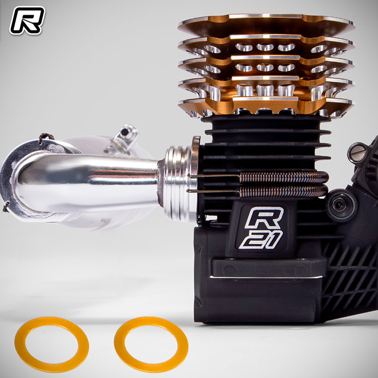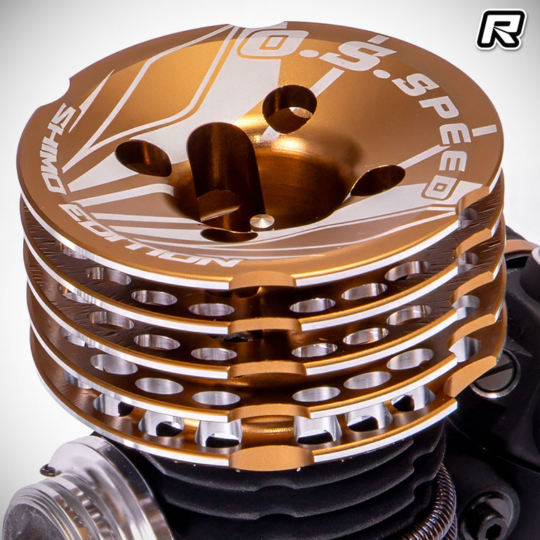 Japanese engine manufacturer O.S. Engines has introduced their all new O.S. Speed R21 Shimo Edition 3 1:8 Onroad engine. The latest collaboration engine with O.S. Team driver Takaaki Shimo, the engine features spacer(s) on exhaust section of the crank case that help to provide more linear from low to top end. The cylinder liner is now 9 port with new treatment of the piston for longer life of the engine. The carburettor, to avoid fuel leakage and air in the line, uses “Dust cover ring” to make the idle better and stable. On the exterior, the engine uses deep gold outer head, venturi to create all new look. To maximise the performance, a combo set of the engines comes with TR03 EFRA2196 + MR05.