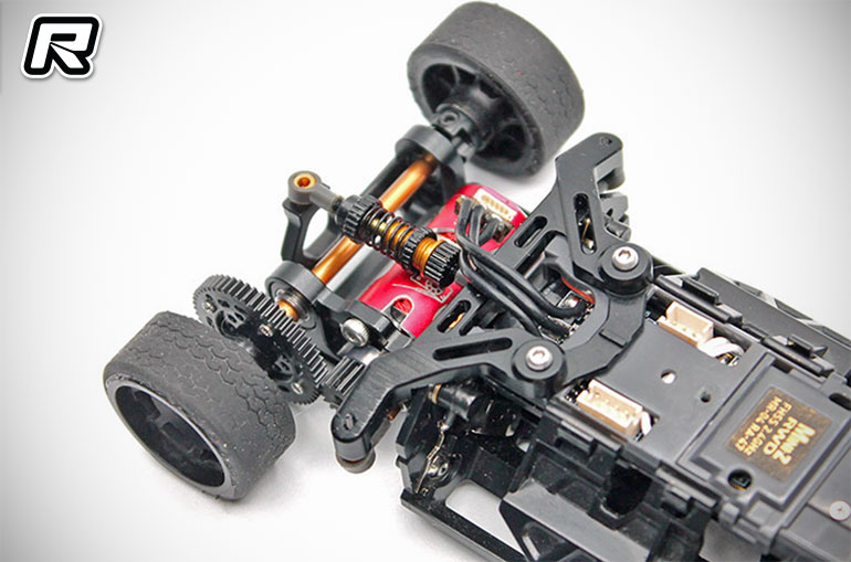 1:28 specialists Reflex Racing has released this new Low Profile damper system for the Kyosho MR-04 Mini-Z. By use of some clever engineering and repositioning of the dampers on the MR-04, they have been able to achieve an extremely low centre of gravity suspension set up for your AAA car. Simple and high performance, this suspension kit is compatible with traditional T Bars, ensuring easy installation and reliable performance. The kit comes with everything necessary to install in your MR-04, with the exception of a top shock. Here, you can chose to use the Reflex Racing RX28A-33 or any other ‘traditional’ 1:28 scale centre shock. The POD will only fit round can motors.
