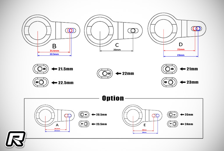 One of the companies making our overage of this week’s IFMAR 1:8 Onroad World Championship possible, aftermarket parts manufacturer T-Works has released this 7075-T6 Hard Coated Aluminium Servo Saver Arm for the Kyosho MP11 1:8 Buggy. Machined from premium 7075-T6 alloy and finished with a black hard coated treatment, it delivers significantly enhanced hardness and wear resistance. Fully compatible with the original kit part for hassle-free installation, it features three types of threaded adjustment shims (B/C/D), which can meet the adjustment needs of different installation distances and have a wider range of applicable scenarios. The Type B threaded adjustment shim supports dual-position distance adjustment of 22.5mm and 21.5mm. The Type C threaded adjustment shim has a fixed adjustment distance of 22mm, suitable for precise matching requirements. The Type D threaded adjustment shim: Supports dual-position distance adjustment of 21mm and 23mm. Customers may also purchase Gasket A and Gasket E separately as needed. Gasket A (thread-adjustable) supports dual-position distance adjustment of 20.5mm and 23.5mm while Gasket E (thread-adjustable) supports dual-position distance adjustment of 20mm and 24mm.