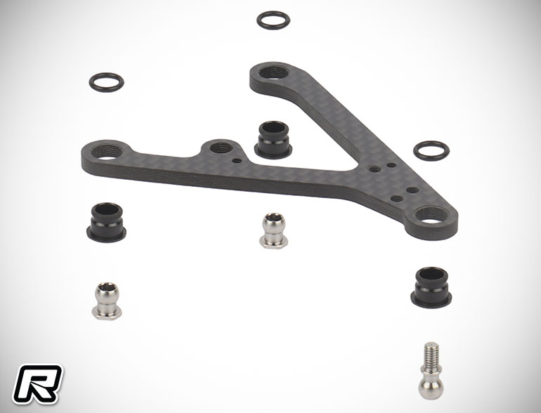 The A11’s design integrates the latest up-stop limit function on the bulkhead. This function can adjust the body roll and lateral grip by limiting the upper travel of the suspension arms. On tracks with high grip, reducing the front upper travel can increase front-end response and prevent oversteer. Reducing the rear upper travel can reduce rear grip and increase the response when switching sides. This is an optional accessory and can be purchased separately.