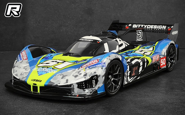 Italian body shell producer Bittydesign has joined the Hypercar class with the release of its 499 body, the 1:10 190mm shell available in an R and T variant depending on intended chassis use.  The 499R is specifically developed for the latest ultra-low profile touring chassis, this Hypercar body was born for maximum performance.  It only fits on the latest generation of 1:10 touring cars with an ultra-low profile chassis.  For older chassis, the limit is 53mm height from the ground for the front and rear shock towers.  The 499T (red paint scheme) is the only Hypercar body in the world specifically developed for the Tamiya TT-02 and similar high-profile chassis, a perfect fit with no contact with the shock towers.