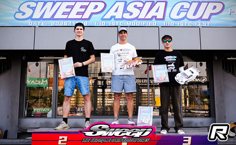 Hongyu GDC hosted the Sweep Asia Cup over weekend where having ended his 2025 racing season with victory at the Chinese track Infinity’s Bruno Coelho opened his 2026 campaign with another win at the ISTC World’s host track. Attracting a number of international team drivers for the race as a pre Worlds testing opportunity, in qualifying FEMCA Asia Champion Coelho would secure the TQ topping 3 of the 5 rounds as Schumacher’s Michal Orlowski topped Q1 and Q3. Chinese Onroad Champion Alfred Lao completed the Top 3 on the grid ahead of the Mugen Seiki of 2025 TITC Open Brushless finalist Fong King. In Stock qualifying Jan Ratheisky was another of the FEMCA Asia Championship competitors to return to Foshan for more track time, the Xray driver topping all 5-rounds to TQ ahead of the Serpent of Stick King. In the finals Coelho would win all 3 Modified encounters ahead of Orlowski with King completing the overall podium. Ratheisky took the Stock win with a clean sweep as young Yuheng Cai who qualified 3rd finished ahead of King to claimed second overall.