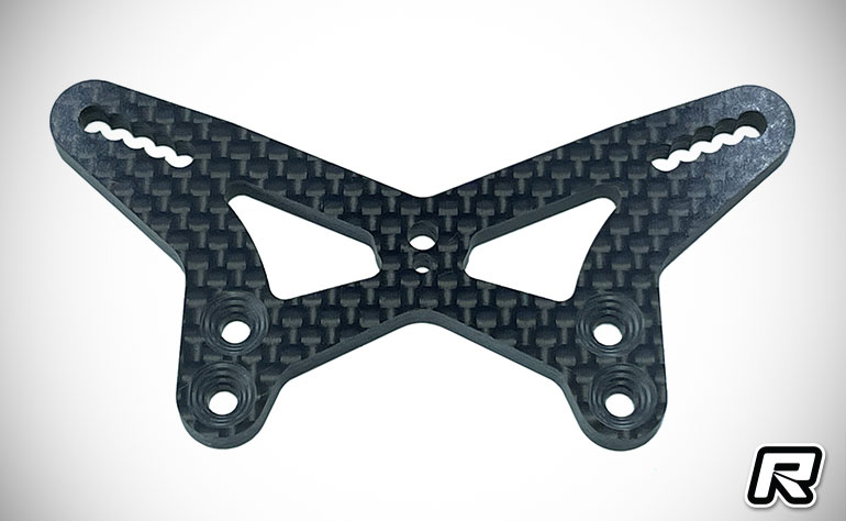Mugen Seiki has released some suspension optionals for its MSB1 1:10 2WD Electric Buggy in the form of +2 Front and Rear carbon shock towers and an Inverted Rear Shock Mount Set. To enhance adjustability on their -4mm chassis, additional outer mounting holes have been incorporated alongside the conventional positions, enabling a wider range of suspension settings both front and rear. Furthermore with the rear tower, while the baseline wing position is retained at the conventional upper hole, the addition of two higher mounting positions and one extra hole significantly improves overall stability. On low-grip surfaces, positioning the wing at the highest setting provides enhanced traction. These features allow the vehicle to adapt to a wide variety of track conditions and deliver handling characteristics that respond precisely to driver inputs. The Inverted Rear Shock Mount Set helps lower the centre of gravity significantly enhancing cornering performance on high-grip surfaces and enabling sharper, more stable transitions. In addition, this setup improves chassis attitude control during jumps on carpet tracks, resulting in more precise and responsive handling.