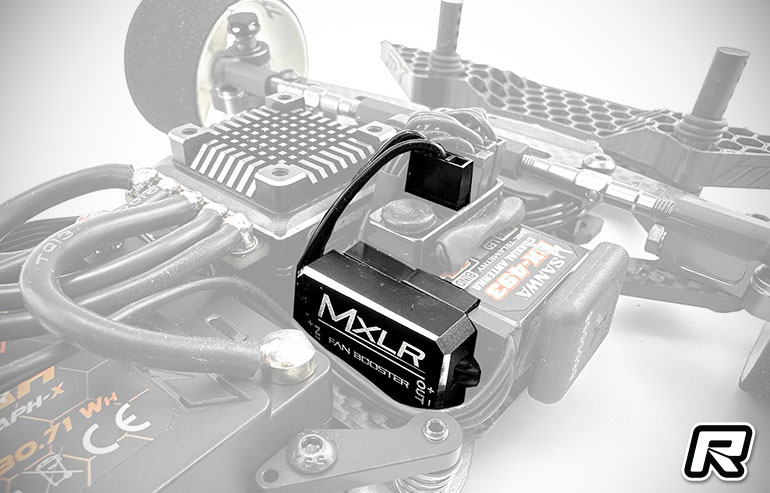 New from German electric onroad brand MXLR comes this Fan Booster. Housed in a lightweight alloy case and weighing 4.5 grams, this small device transforms the 6V of your receiver to 8V output, which will increase the speed of your fan and by this the cooling ability. This leads to less fading, more consistency and by this more speed over run time. Measuring 24,20mm long / 13,20mm wide / 6,2mm high, to install simply connect the Fan Booster via the JR Servo Plug with your receiver, plug your Fan into the booster.