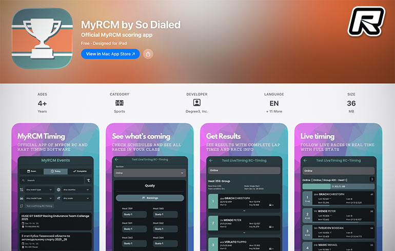 So Dialed Racetech, a California company dedicated to helping RC enthusiasts through innovative mobile apps, has released the official mobile app for well known worldwide timing platform MyRCM. The app was created in partnership with RC-Timing, the Swiss based company founded by Felix Romer, and which is leading provider of RC, through MyRCM, and Kart race timing software in Europe. MyRCM by So Dialed allows drivers and spectators to effortlessly track the European RC racing scene in real-time. Key features include a comprehensive event view in which drivers can easily view events happening now, check upcoming events, and review completed events from around the world, and they can filter by country, race type, and track type so they only see the races they care about. You can also view detailed results and participation. Live Race Tracking supports live scoring with drivers able to see real-time results and follow race standings and lap times as they happen. MyRCM by So Dialed is available for download on Android and iOS devices: