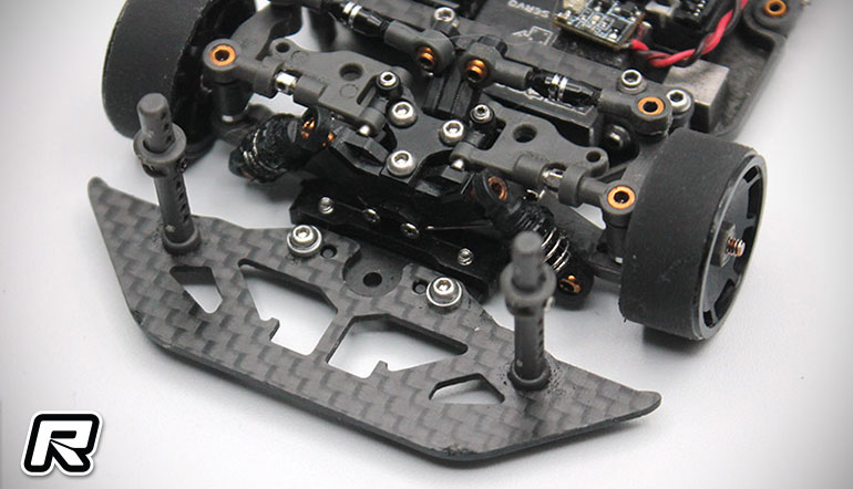 1:28 specialists Reflex Racing has released a number of new Raised bumper sets. These are beneficial when the track is bumpy or it has long sweeping corners where you may drag the corners. The extra clearance provides more predictable handling and they weigh slightly less than the TPU lined bumpers previously offered. The new raised bumper system uses an aluminium attachment at the nose in order to raise the CF Bumper.