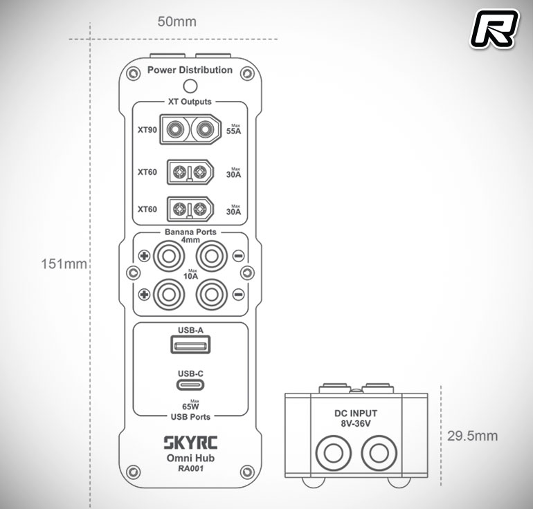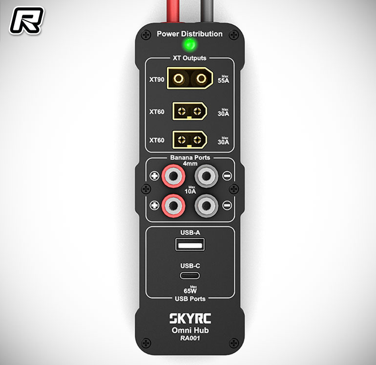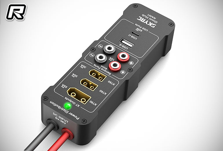 To compliment their extensive range of chargers and power supplies, SkyRC has introduced the Omni XT90 Power Distribution Hub, a compact high-power expansion solution designed for RC workbench and portable setups. Built around an XT90 input, the hub supports up to 2000W of stable power distribution when paired with the SkyRC eFUEL PSU2000, allowing multiple RC devices and digital accessories to be powered at the same time. Outputs include one XT90 and two XT60 ports rated up to 55A, dual 4mm banana outputs up to 20A, and 65W USB-C and USB-A fast-charging ports for everyday devices. Featuring a power-strip–style design, the Omni XT90 offers a clean and efficient way to expand a single high-power input into multiple outputs for both bench and field use.