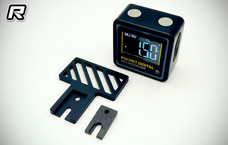 Based on the success of the first generation, Takashima D-13 has released the V2 Aluminium Electronic Caster Gauge.  Compared with V1, updates to the V2 version include it being made from aluminium alloy for improved appearance, lighter weight, better durability, and improved flatness.  It also gets a unique hub-insert design.  The gauge is installed directly into the hub, ensuring the measuring surface is perfectly aligned with the hub, greatly improving measurement accuracy.  Combined with carbon fibre plates of different slot widths, it allows zero-play fit for different popular chassis on the market.  The electronic caster gauge can be fixed with double-sided tape or simply placed directly, providing much greater flexibility during measurement.