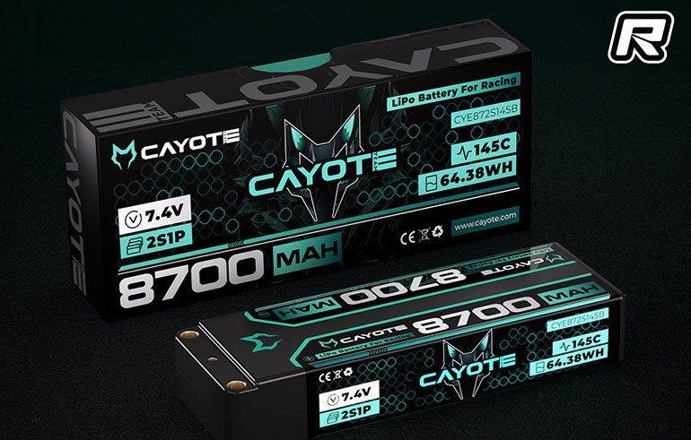 Team Cayote has expanded its popular battery line-up with the addition of this 8700mAh Lipo pack. The latest 2S1P 7.4V configured pack has an energy output of 64.38Wh and weighs in at 321 grams. Measuring 139 × 47 × 25.1mm, the 145C 8700 pack is recommended for 1:10 Stock and 1:8 GT racing use.