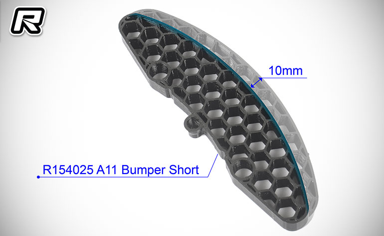 ARC has introduced a new optional Short Front Bumper for its recently released A11 competition level 1:10 Electric Touring Car. Compared with standard kit bumper, the short bumper has 10mm more space between bodyshell and bumper and is also 2.5 grams lighter. The bumper is required when using some GT realistic bodyshells on the A11.