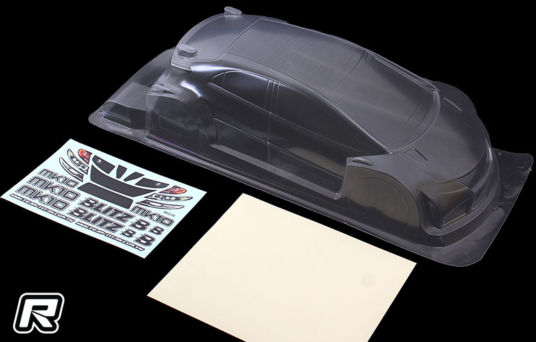 Body shell producer Blitz has a new FWD Touring Car body shell announcing the all-new MK10. Compared to its predecessor the Blitz MK9, the new MK10 is shorter overall and adds four small straight wings. These changes enhance the MK10’s performance, and the rear wing has two cut lines that allow drivers to adjust the vehicle’s stability. The body will be offered in both a 0.7mm Standard version and a 0.5mm Light version with each including a decal sheet and and window masks.