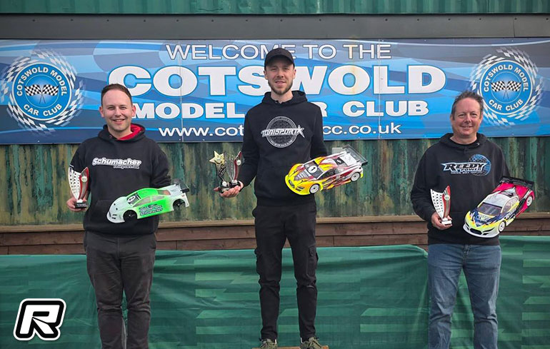 Kyle Branson has won the opening round of the BRCA British Touring Car Nationals. The first of the 5 championship rounds was stages at the Cotswold track where in practice reigning champion Elliott Harper would break the track record with his prototype Schumacher, Branson also managing to break 21 laps. In qualifying it was Branson who was fastest but only marginally over Harper. Topping 3 of the 4 rounds, Branson posted a 21/5:07.13 compared to Harpers 21/5:07.49. Behind Peter Eagles and Chris Grainger completed the Modified class Top 4. In the finals, the British Championship running double A-Mains, Branson won the first by 2.5-seconds from Harper with Grainger moving up to third. A2 would see Harper go for a gap but unfortunately spin out after side-by-side contact. Setting the fastest lap of the harper would manage to finish second just behind the winner with Eagles in third but overall it was the veteran Grainger who competed the podium. Round 2 of the championship will take drivers to Stafford on May 25th.