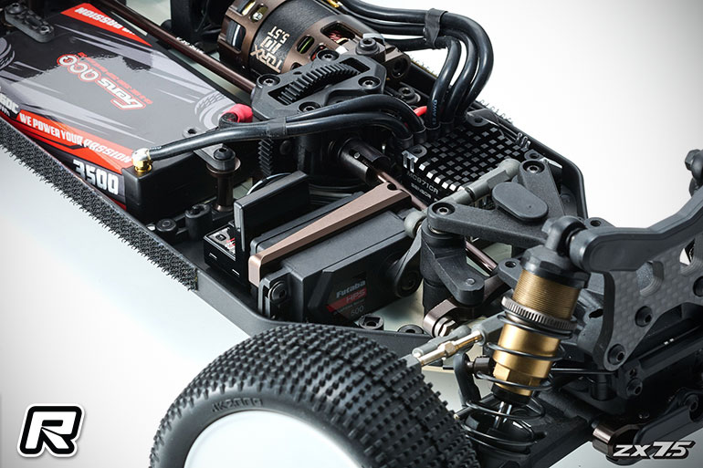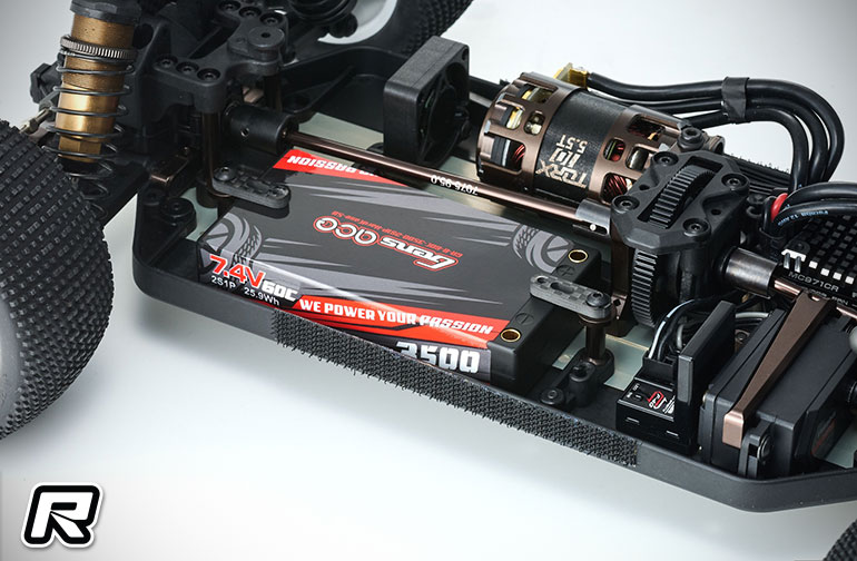 – Floating servo mount and battery holder preserve chassis flex for improved handling.