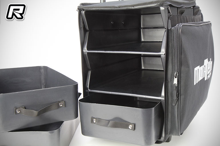 Well known Italian onroad body shell producer Mon-Tech Racing has introduced a new 3 drawer trolley bag. Thanks to a major technical upgrade, the internal structure is now fully molded, taking the construction quality to a superior level. These changes ensure maximimum rigidity, the new high-density molded structure is much more robust, keeping the bag perfectly in shape even under heavy load. Millimetre-accurate molding also eliminates friction so now the 3 drawers slide with a smoothness and precision never experienced before.