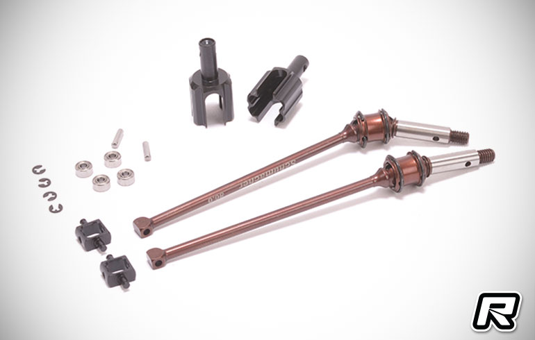 Schumacher has introduced this new Front Bearing Driveshaft Conversion for its CAT PB 1:10 4WD Buggy.  The conversion allows the car to roll more when the transmission is loaded.  Normally a pinned dog bone on a normal output will have more support/bind which keeps the chassis flatter in the corner in turn giving the car more forward drive.  With the ball bearing system you should gain more front end movement from the suspension, allowing the steering and suspension to be less affected by throttle input.  The team have found these give more steering and the front/nose tucks into the corner more resulting in faster pivoting in the corners.  They found the best effects on medium and high grip surfaces.