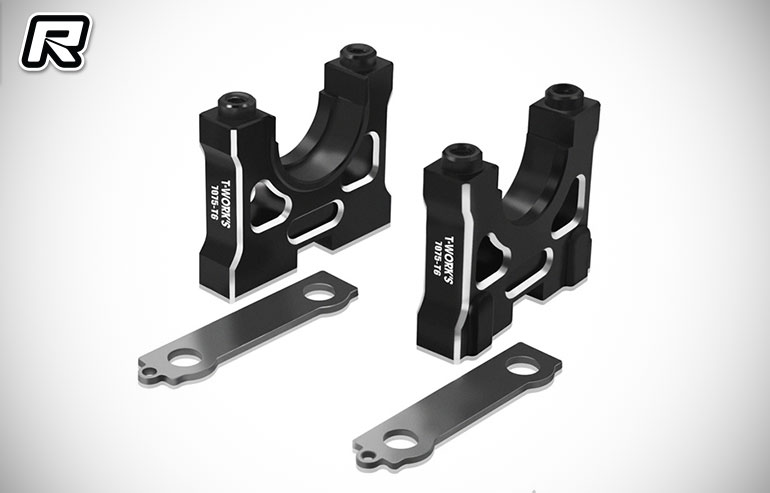 In its latest Kyosho MP11 option parts release, T-Works has added these 7075-T6 Aluminium Centre Diff Lower Mounts. With a blackened finish and refined bevel design, it features high torsion resistance and firmly locks the centre differential and CVD drive shafts for improved transmission accuracy. Its structural design conducts heat directly from the centre differential to the chassis base for rapid heat dissipation and effectively lowers the operating temperature of the centre differential. Stainless steel gaskets replace the original plastic versions, distributing screw locking pressure to prevent chassis deformation, ideal for gear replacement and assembly.