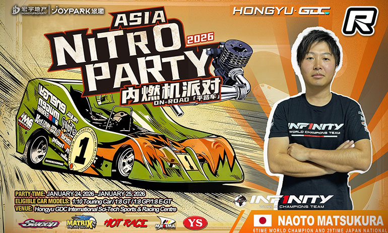 Infinity has confirmed they are sending multiple World Champion Naoto Matsukura to the inaugural Nitro Party race which takes place later this month at the new Hongyu GDC track in China. The Japanese driver holds one of the most impressive World Championship records in our sport winning 6 World Championship title over three different classes, 1:12, ITSC, and Nitro Touring Car, and has appeared in World final across numerous disciplines including 1:8 Onroad and 1:10 Electric Offroad. Fresh from racing at the FEMCA Asia Championships, TQ’ing the opening qualifier, at the impressive Hongyu GDC facility in December in preparation for the upcoming ISTC World Championships, the Japanese ace will return to the city of Foshan on January 24-25 for some nitro action. With the Nitro Party race creating great excitement within the Asian nitro onroad scene, the race has also attracted international attention with newly crowned 1:8 GT World Champion Alession Mazzeo one of a number of Italians already confirm for the first edition.