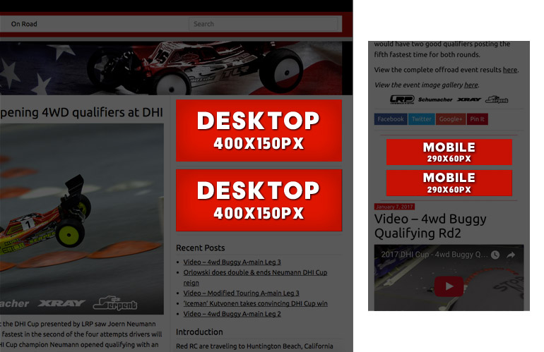 We wish to offer our Event site advertisers on Red RC a high quality promotional package which includes: