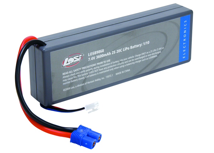 Losi’s new hard case LiPo batteries for 1/10-scale vehicles provide racers with a simple and affordable power upgrade. Each LiPo battery features a protective hard case shell for increased safety and comes pre-wired with an EC3 connector. Available in a wide range of configurations for various applications. Losi also now offers two new LiPo batteries for Losi 1/18-scale vehicles. Their lightweight design enables increased performance, and each battery is pre-wired with a Losi mini-connector. Available in 1300mAh 7.4v 15C and 1300mAh 11.1V 20C versions.