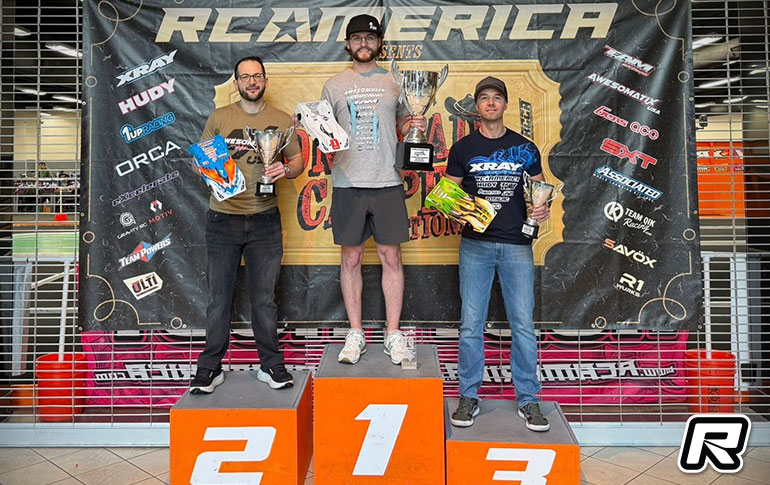 Awesomatix’s Kemp Anderson and Xray’s Chris Adams are the new ROAR Carpet National Champions, both drivers denying 2025 double champion Sam Isaacs back to back titles at the RC Car Club of America hosted event in Texas. In 1:12, Anderson took the TQ after topping 3 of the 4 qualifiers from team-mate Isaacs who was fastest in Q3. Xray’s Keven Herbert completed the Top 3 on the grid. In the triple finals Andreson opened with a win ahead of Hebert and repeating the win in A2 over Isaacs secured the title. Winning A3, Isaacs took the second step on the podium which was completed by Hebert. In Modified Touring Car, Adams took the opening three qualifiers at his home track to secure the TQ ahead of Isaacs who topped Q4 with Hebert again lining up P3. Winning A1 by 3/10ths from Isaacs, Adams took A2 by a 3-seconds from the defending Champion to lift the ROAR National title. Winning A3, former Champion Hebert would secured P2 with Isaacs on the third step of the podium.