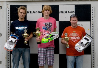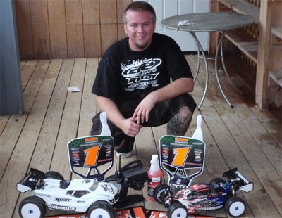 Very late in the season, at the beginning of October, the Norwegian Championship 1:8th scale IC track was held at the Hvervenbukta Raceway in Oslo, which was the venue for the Euros back in 2003. Despite cold and humid conditions the fastest laptime in practise was 12,65 sec which is below the track record from 2001. Unfortunately it rained during the night and on the morning of the race day most of the race was run under wet or semi wet conditions. Shepherd racer Adrian Berntsen already showed his strong performance during qualifying by winning every single qualifying round and taking the TQ for the 45 min final in front of Lars Haugen, Arntzen Erik and Helge Johannson. The final could be started under dry conditions and Adrian showed a perfect performance leading from start to finish. Besides the fuel stops only 7 laptimes out of 191 were over 14,000 sec with the best lap being a 13,503. With a gap of 4 laps he crossed the finishing line in first position in front of Lars Haugen (Mugen) and Rasch-Olsen Frode (Mugen).