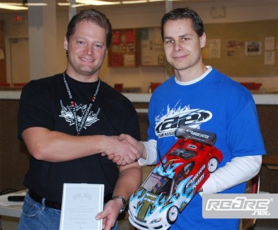 Team Shepherd driver Chris Steele has successfully defended his Irish 1:10 200mm National Championship title continuing his 100% winning form as the fifth round took competitors to Northern Ireland. Racing at the tight Ballymoney circuit, Steele maintained his perfect qualifying record to secure his fifth TQ honour of the season ahead of the returning Mark Gilliland. Leading the 30 minute encounter from start to finish Steele set the fastest lap to take his Murnan Modified RB powered Velox V10 to a 4 lap winning margin. Making it a 1-2 for Shepherd, teenager Darren Gibb took second with Gilliland’s Xray completing the podium. With the title in the bag despite two round still remaining in the 2010 Championship, Steele can now concentrate on getting married with him due to tie the knot later today (Thursday).